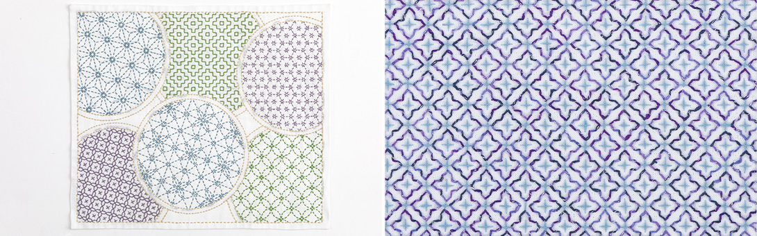 ラメ入りのスパークル糸で雨とあじさいを刺す1 枚仕立ての〈あじさい日和〉や、 万華鏡のように広がる連続模様が美しい〈カレイドスコープ〉など、多彩なアイテムが揃いました。