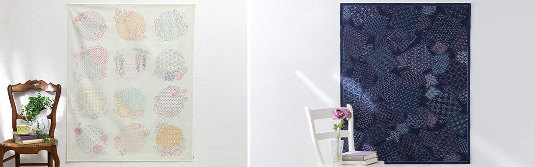 四季を彩る花々と、日本の伝統柄が美しく調和した刺し子キットのシリーズが登場。 手仕事で季節を描く、心豊かなひとときをお届けします。