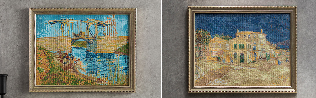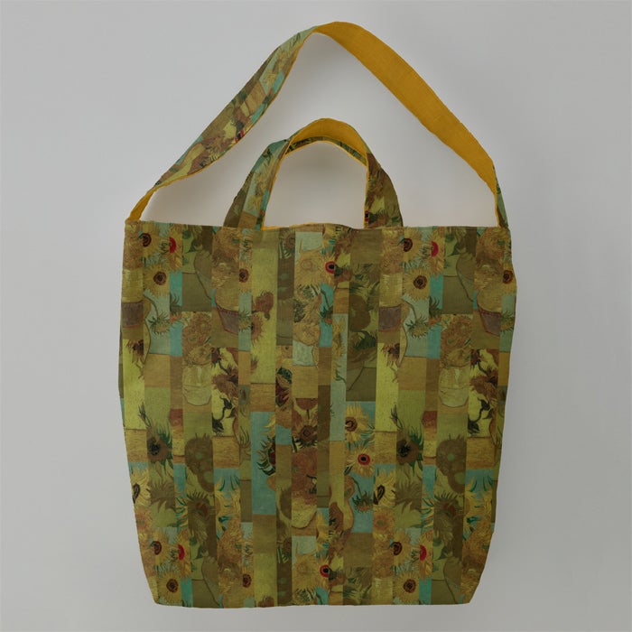 群青と黄色の対比が印象的なアルルの風景を描いた〈黄色い家〉、ひまわり4作品をミックスした オリジナル生地でつくるスクエアバッグなど名画の世界を手仕事でじっくりと味わってみませんか。