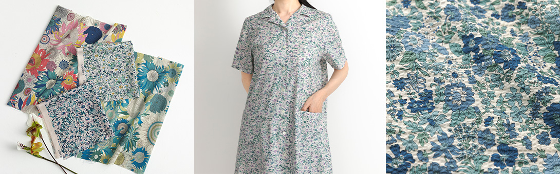 軽やかな質感のタナローン生地を夏向けの爽やかな色合いでご用意しました。 ワンピ-スはもちろんブラウスやバッグにもおすすめです。