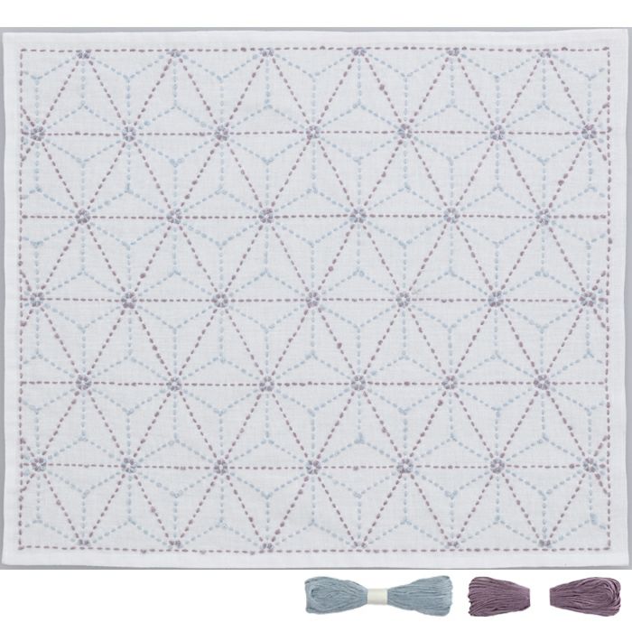 素材にこだわったホビーラホビーレの刺し子。柔らかな綿を使用し、自然な風合いにこだわったオリジナルクロスをつかいます。蛍光染料は使用しておりません。針通りも良いので、心地よくおつくりいただけます。印刷線は水で薄くなります。