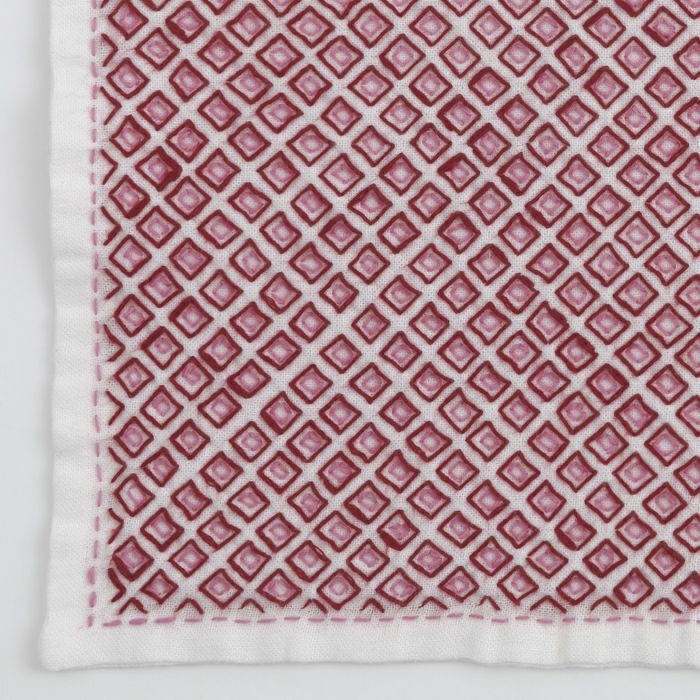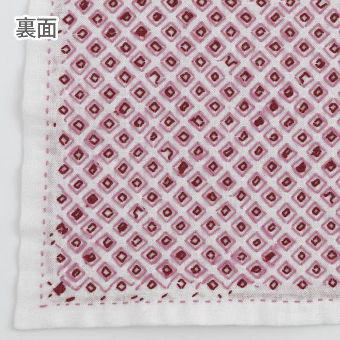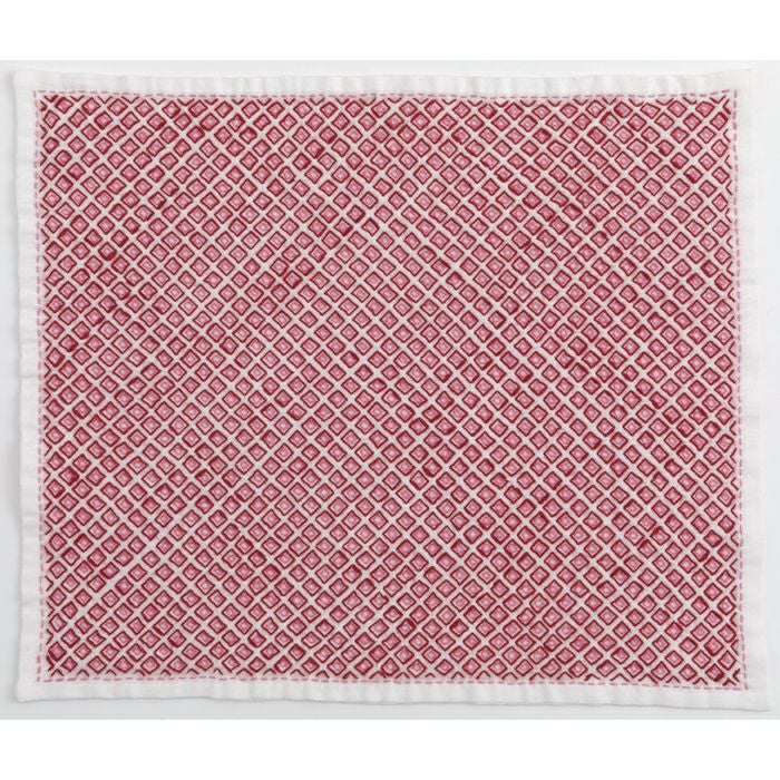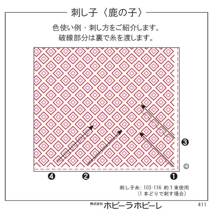 子鹿の背中の斑点をデザイン化した伝統的な鹿の子模様を一目刺しでデザイン。大小の小さな四角形を斜めに刺していく糸加減がポイントの、中~上級者向けのアイテムです。