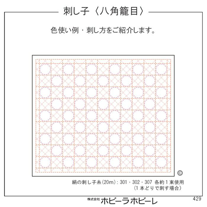 使用糸(別売)絹の刺し子糸<紅梅色><301>