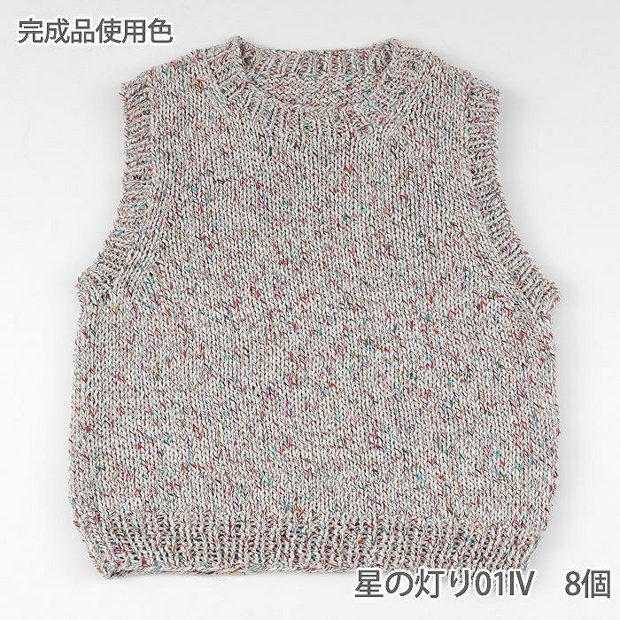 細いウールの糸と星のきらめきを思わせるようなカラフルなスラブ糸を撚り合わせ、編みやすい極太糸に仕上げました。棒針編みのウェアやカギ針編みの小物にもおすすめです。