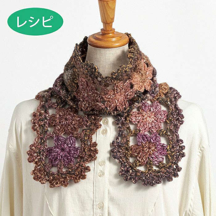 落ち着いたトーンが大人の上品さを引き立て、深みと豊かさを添えます。「ノクターン(夜想曲)」のような静けさと「バリエ(変奏)」を思わせる色の変化がやさしく編み地を彩ります。