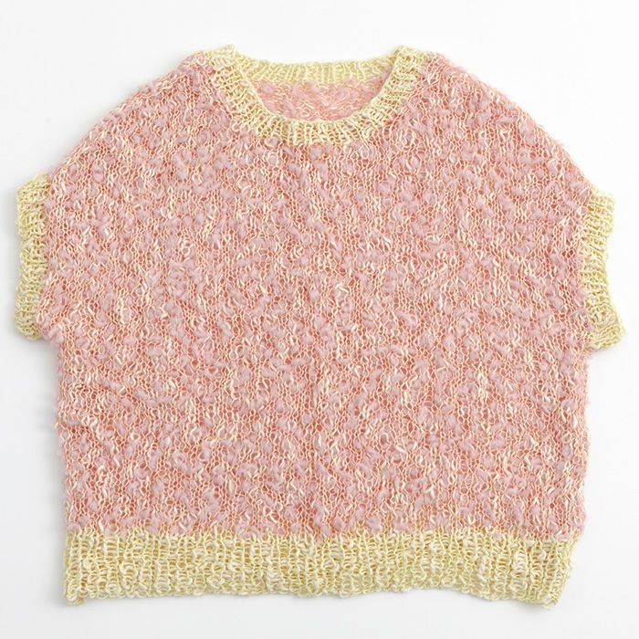 桜の花をイメージした重ね着向きのベスト。糸の大きなネップが桜のつぼみに見えるように、太めの編み針で編む身頃がポイント。ふんわり軽やかな春色ニットです。