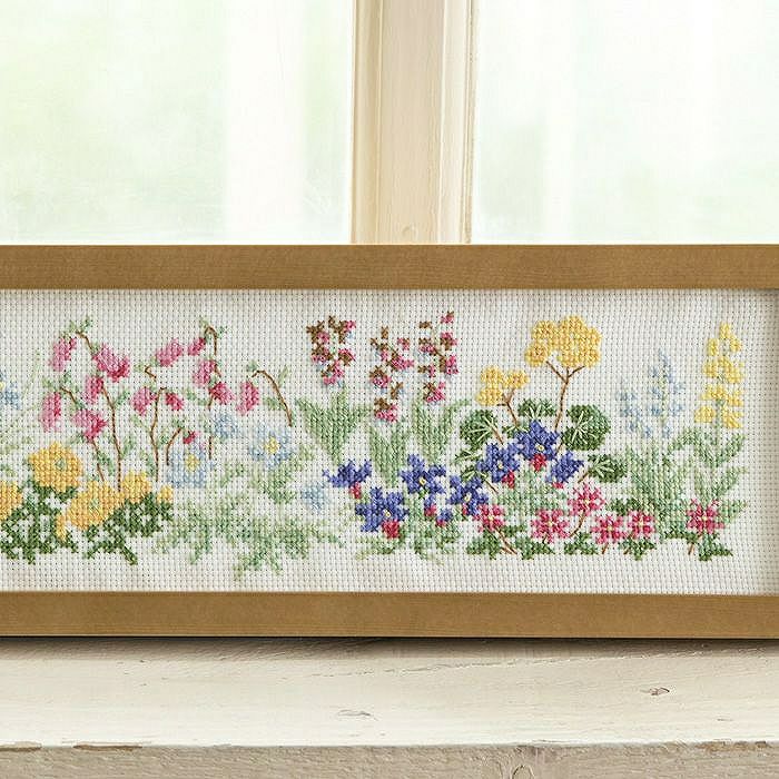 色とりどりの山野草が咲く植え込みをクロスステッチ。清楚で可憐な山野草を横長のフレームに描きましょう。初心者の方にもお楽しみいただけます。