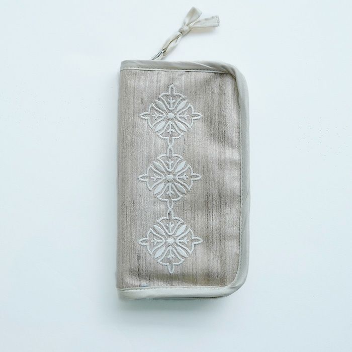 おしゃれな花柄刺繍入りシルクケースに入ったかぎ針セットです。