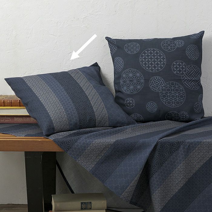 刺し子の人気柄を縞状に並べたプリント〈Sashiko Style 縞〉でつくる、40cm角のクッションカバー。ほどよい厚みで素材感のあるコットン地は、季節を問わずお使いいただけます。