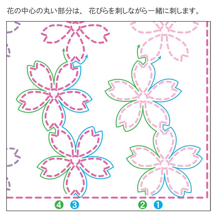 手ぬぐいサイズの舞い散る花びらが美しい刺し子クロス〈満開の桜〉や、お花が並ぶ〈アネモネ〉、 人気の伝統柄〈麻の葉〉〈花十字〉は絹やスパークル糸を使ってより美しく特別な一枚になるようにご提案。