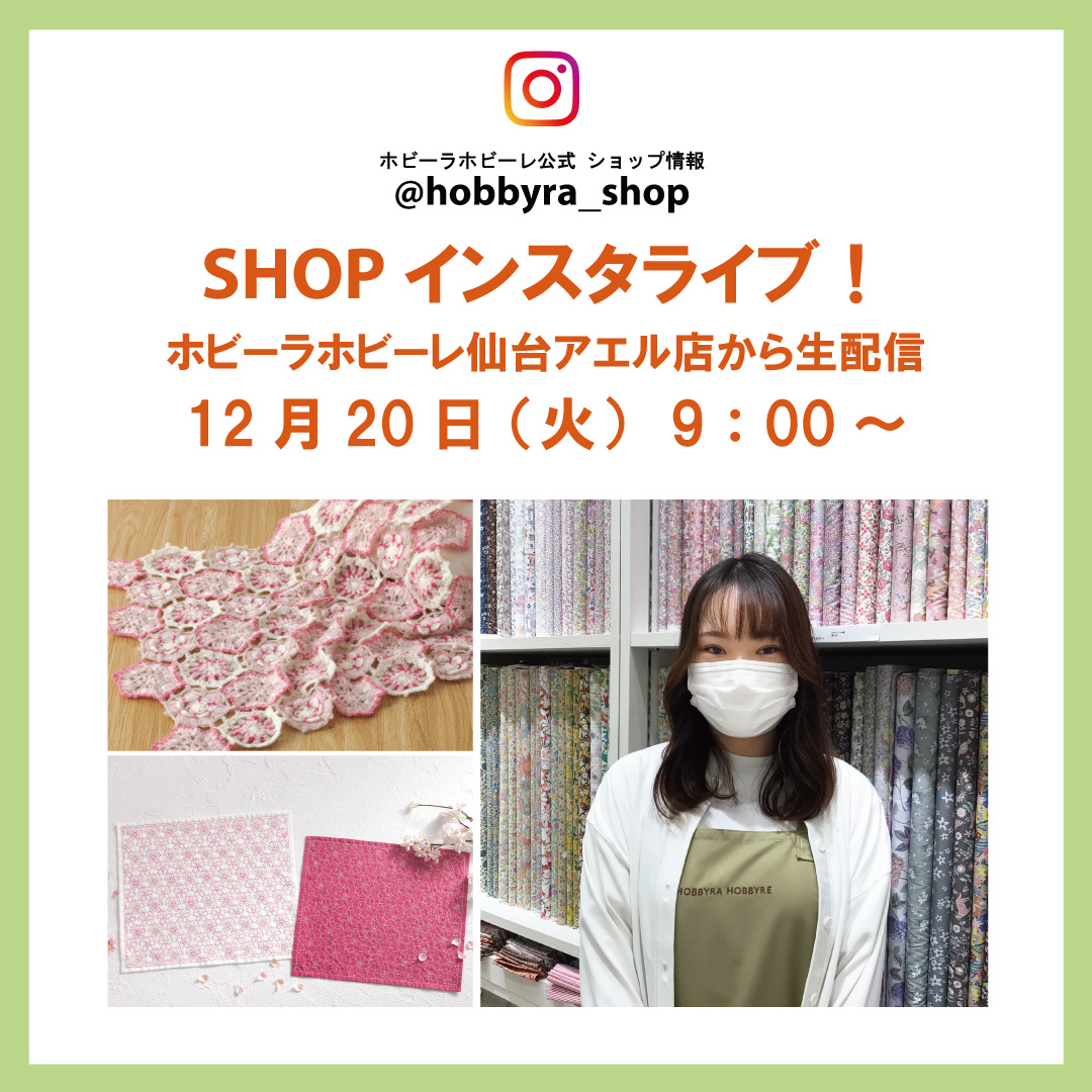 2023.02.02 おしえて!ホビーラホビーレ インスタライブ2月3日(金)11:00~開催! 2023.01.23 「刺し子ちくちくインスタライブ」1月25日(水)12:15~開催! 2023.01.23 店舗インスタライブ♪西武池袋本店ホビーラホビーレより生配信 2022.12.19 店舗インスタライブ♪ホビーラホビーレ仙台アエル店より生配信 2022.12.15 「刺し子ちくちくインスタライブ」12月20日(火)12:15~開催! 2022.12.15 「ニットあむあむインスタライブ」12月16日(金)12:10~開催! 2022.12.08 店舗インスタライブ♪ホビーラホビーレ銀座店より生配信 2022.10.13 「ニットあむあむインスタライブ」10月18日(火)12:10~開催! 2022.09.22 「刺し子ちくちくインスタライブ」9月28日(水)12:15~開催! 2022.09.20 可愛すぎる毛糸に悶絶!?初心者にも編みやすい毛糸ご紹介します♪【ホビホビちゃんねる】 2022.09.20 店舗インスタライブ♪ホビーラホビーレ自由が丘店より生配信 2022.09.09 店舗インスタライブ♪ホビーラホビーレ自由が丘店より生配信 2022.09.05 【ニットあむあむインスタライブ】配信延期のお知らせ 2022.09.05 「刺し子ちくちくインスタライブ」9月6日(火)12:15~開催! 2022.08.25 【刺しゅう】さわだとちくちくティータイム!とっておきのクロスステッチフレーム&ステッチクロス【ホビホビちゃんねる】 2022.07.25 【刺し子ちくちくインスタライブ】配信延期のお知らせ 4 / 5«12345»
