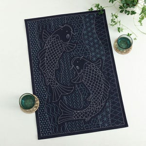 鯉の図案に一目惚れし、購入しました。6種類の伝統柄があり、刺していて変化があるので飽きないです。糸は2色で少なめですが、その分デザインが引き立って、出来上がるのが楽しみです。