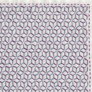 刺し子のクロスなどで採用されていた柄で、ふきんサイズで刺したかったので、待望の発売でした。伝統的な柄ですが、糸の色が変われば、印象が全く違うふきんになりそうです。 一目刺しでたくさん刺すところがあるので、時間はかかりますが、完成させることが出来たら、より達成感を感じる1枚になります。
