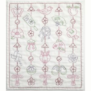 とてもかわいいデザインです。つるし飾りを下げるスペースがなくても大丈夫。 楽しみながら刺して 比較的短時間で刺し終ります。