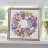 色とりどりの刺繍糸で楽しく刺すことができました。 花が立体的に見える色使いで本物のリースのように仕上がりました。