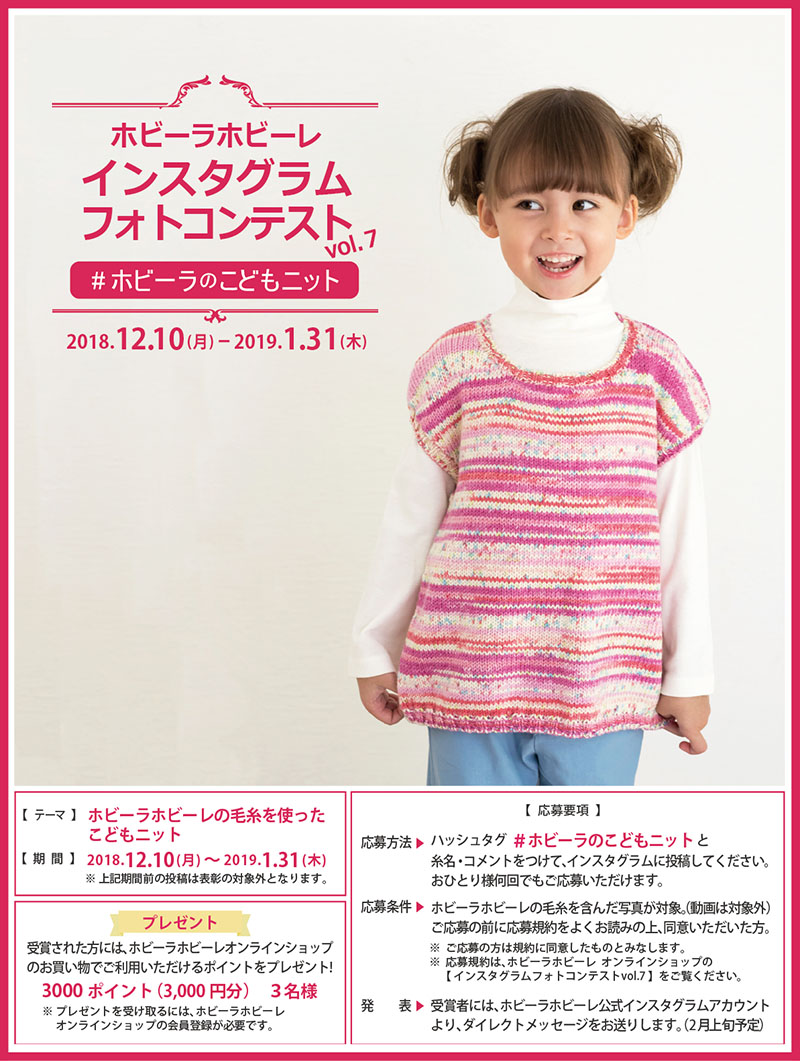 以前にインスタグラムに掲載した写真も可(この場合、ハッシュタグ「#ホビーラのこどもニット」をつけて期間中に投稿してください)